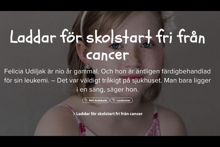 Barncancerfonden (The Children’s Cancer Foundation) were using signs that were only available as hand-written originals, and now needed a similar-looking typeface. The design agency Intellecta found a free font which was very close in design, which they then commissioned us to modify and make bolder to further match the hand-written material, with the final result making the difference negligible.