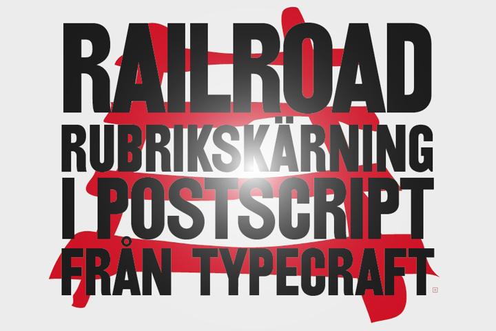 The old wooden typeface Railroad suddenly became in demand by our design agency clients around the mid-90s, hence we decided to produce our own version, which we have since sold a number of copies of. Today Railroad is available from many different foundries, but if you should stumble upon this font in Sweden it could very well be our old version...